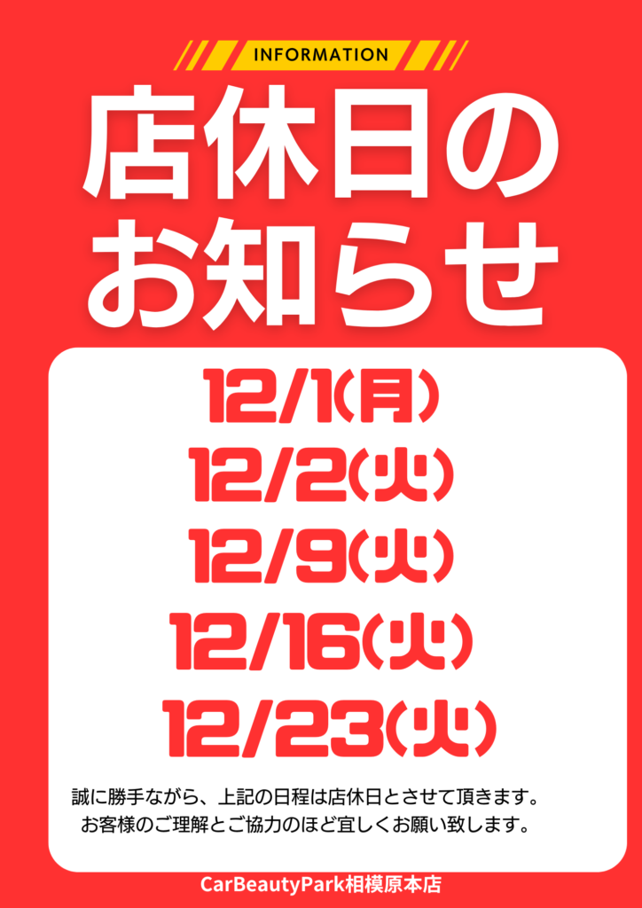 いつも Car Beauty Park 相模原本店をご利用いただき、誠にありがとうございます。